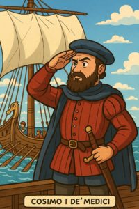 Nel 1500, il duca di Toscana, Cosimo I de’ Medici, era fortemente preoccupato dalla presenza dei turchi nei mari che circondavano l’Italia. Cosimo, però, non si fece scoraggiare: appassionato di mare e soprattutto di navi, decise di costruire una flotta, cioè un gruppo di galere (grandi navi a remi e a vela), per proteggere il suo territorio.