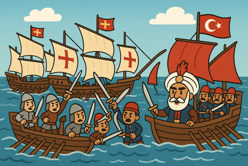 Anche se la potenza navale di Pisa era diminuita, i suoi cavalieri non smettono di combattere. Nel 1571, alcuni pisani partecipano a una delle più grandi battaglie navali della storia: la battaglia di Lepanto. In questa battaglia, le flotte cristiane si scontrano con l’Impero Ottomano, che dominava gran parte del mare. I pisani, insieme ad altri marinai italiani ed europei, riescono a sconfiggere i pirati ottomani.